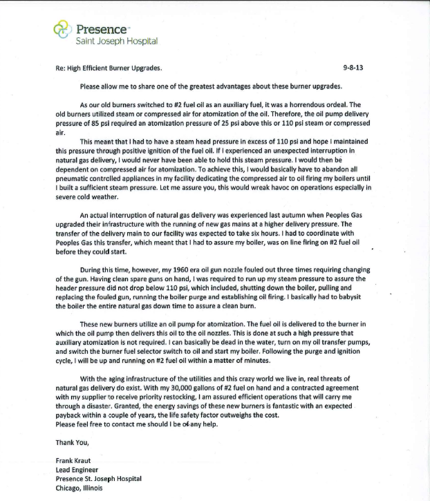 Presence St. Joseph Hospital in Chicago, IL garnered $235,770 in rebates and saved 119,630 therms from the People’s Gas Natural Gas Savings Program.